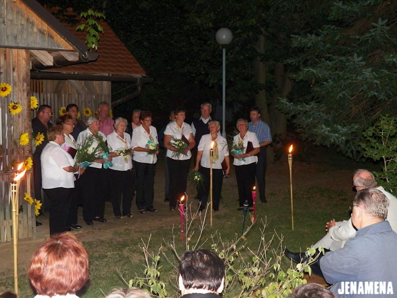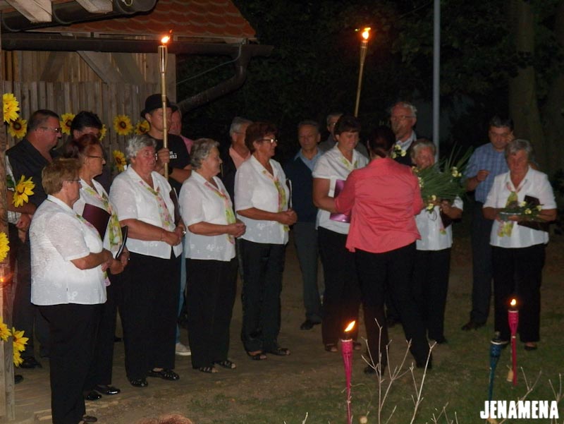 V šolskem parku pri Osnovni šoli Franceta Prešerna Črenšovci smo v idiličnem okolju in v soju bakel lahko prisluhnili domoljubnim pesmim, ki so jih zapele Ljudske pevke upokojenke Kulturno-turističnega društva Črenšovci. V sklopu programa so se jim pridružili Melinčki ciglarji. V sklopu prireditev v počastitev 95-letnice združitve prekmurskih Slovencev z matičnim narodom smo tako domovini poklonili pesem. Pesem srca. Pesem, ki je zapisana v pesmarici Slovenska krajina, mili moj dom … in posneta na istoimenski zgoščenki in so jo posnele Ljudske pevke upokojenke. Vreden dar. In obiskovalci prireditve so ga pozdravili s srčnim aplavzom.