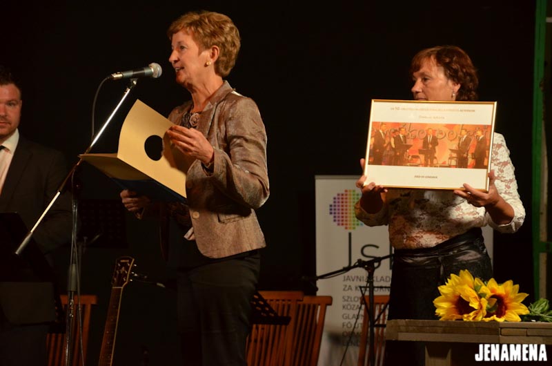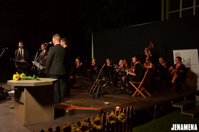 V okviru torkovega programa na Jenamena fest-u nas je v popoldanskem času pozdravilo deževno vreme, s katerim smo torej letos opravili. Dičije senje je potekalo na stojnicah, v nadaljevanju pa so otroci spremljali še lutkovno predstavo Godrnjava račka. V sklopu gledališča na prostem sta se predstavili igralki Romana Glavač in Nataša Čeh v skečem Čarobni kamen. Večerno dogajanje je potekalo v znamenju etno glasbenega večera z Moškim vokalnim kvintetom Aeternum. Člani so praznovali 10-letnico delovanja in ob tej priložnosti so se jim na odru pridružili gostje – Tamburaški orkester iz Ljutomera, pevec ruskih romanc Fredi in Srakova banda iz Beltincev. Številčno občinstvo je v koncertu uživalo in vse nastopajoče nagradilo z bučnim aplavzom. Obiskovalci so se lahko pogostili z zlejvankami, ki jih je pripravila in brezplačno razdelila jenamena kuhinja.