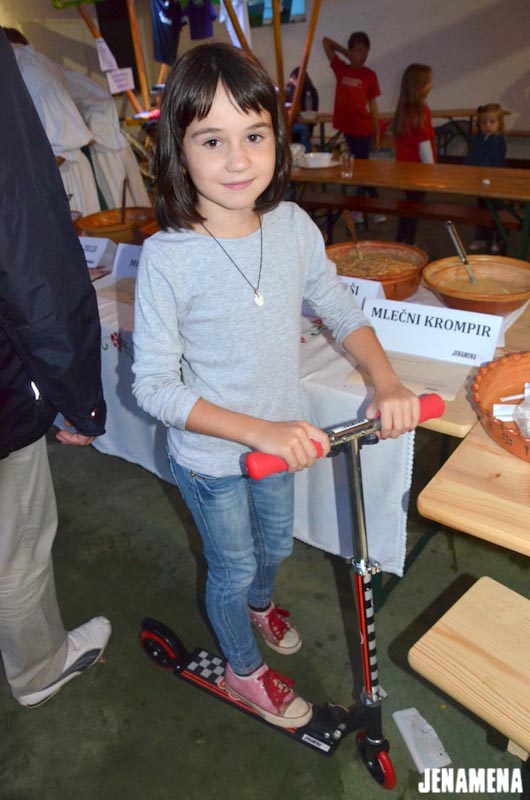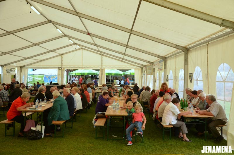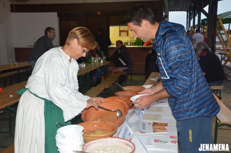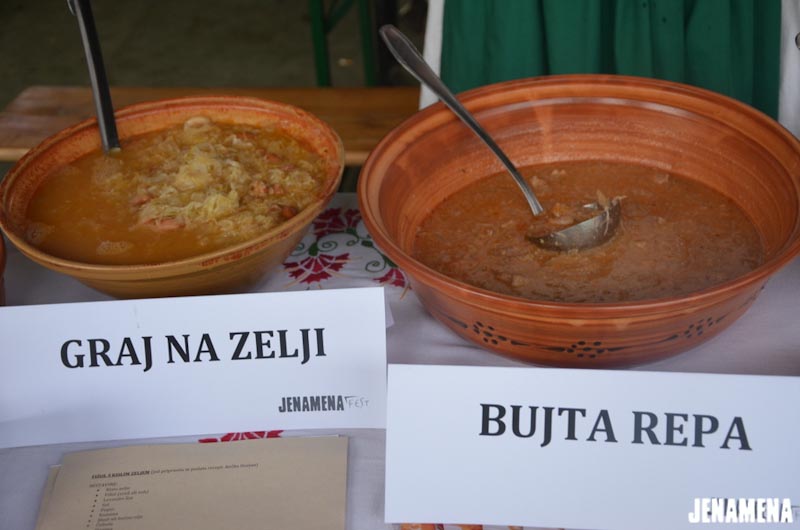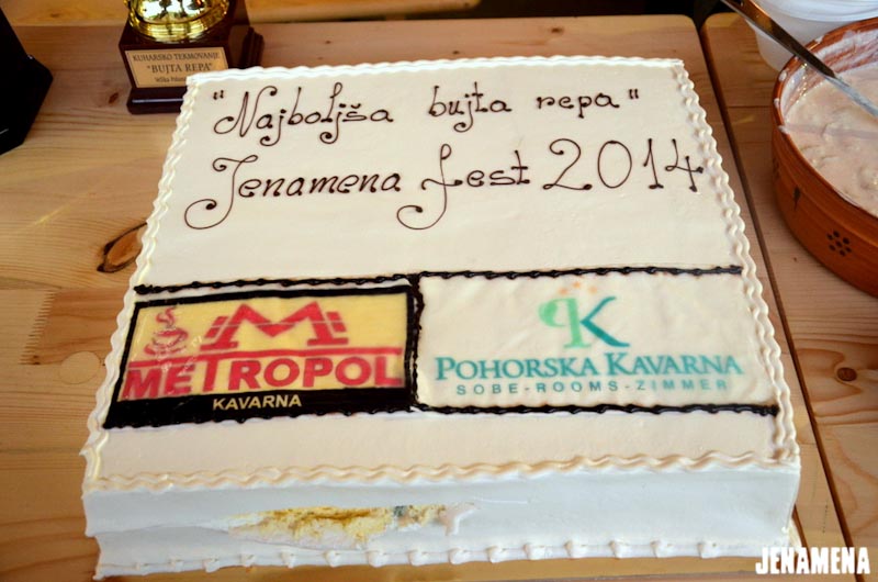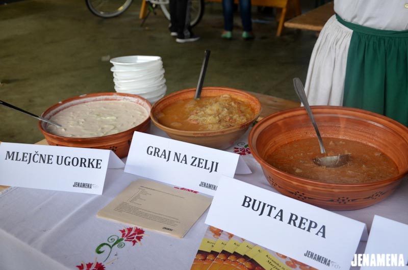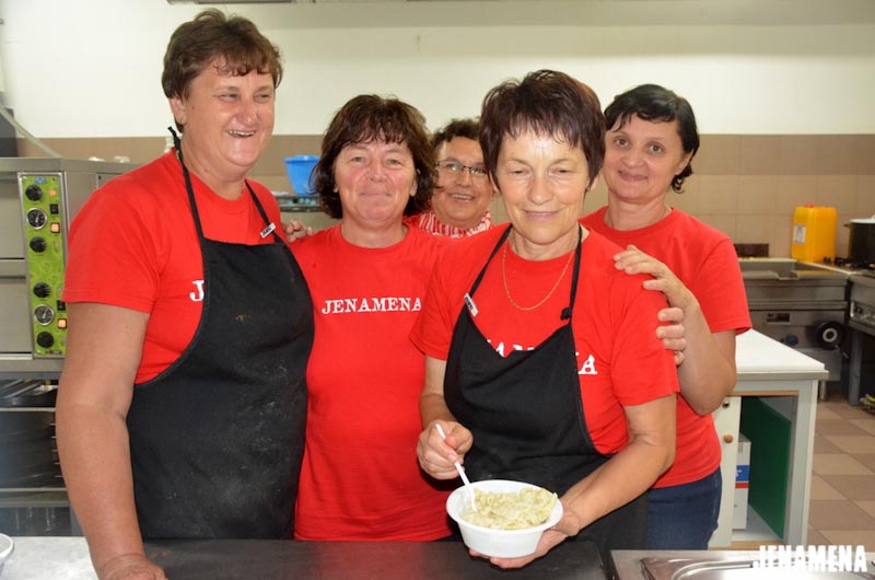 Na jenamena koluaj smo brezplačno ponudili v pokušino tipične prekmurske jedi: mlejčne ugorke, mlejčen graj, graj na zelji, bujto repo, graj na kaši in seveda tudi gibanico. Opravili smo še fotografiranje pred torto, ki jo je jenamena kuharska ekipa dobila kot nagrado za 2. zaporedno zmago na tekmovanju v kuhanju bujte repe v okviru Pomurskega poletnega festivala v Veliki Polani.