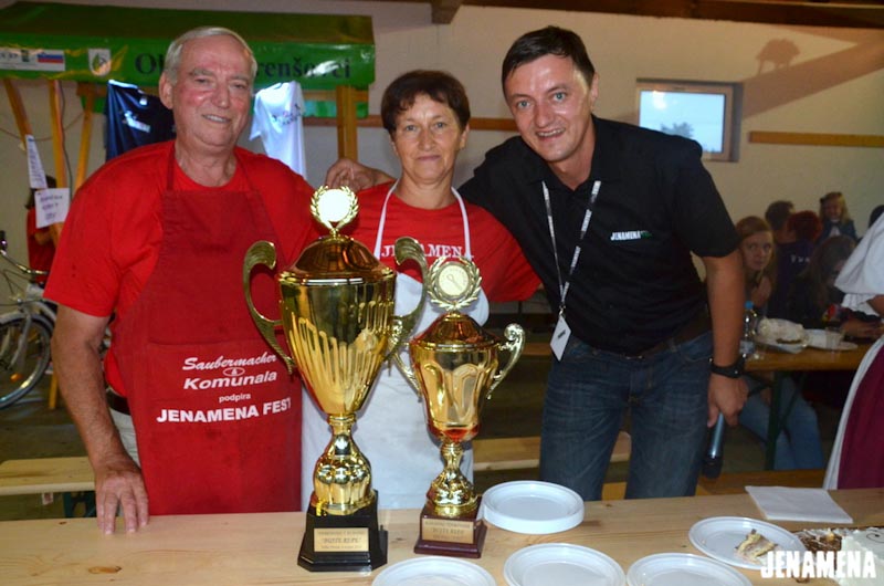 V sklepu dogajanja je sledila podelitev pokalov najboljšim ekipam, prav tako smo izvedli žrebanje za skiro in kolo, ki smo ju podarili Živi Zadravec in Marjani Šemen. Posebej smo se s plaketama zahvalili Osnovni šoli Franceta Prešerna Črenšovci in Občini Črenšovci za pomoč pri izvedbi Jenamena fest-a.