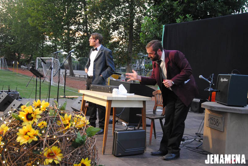 Macho in Mejke sta zavzela oder v okviru predstav gledališča na prostem in dodobra nasmejala številno publiko. Sta velika umetnika oderskih desk in stara prijatelja Jenamena festa – predstavila sta se z odlomkom iz celovečerne predstave pogreb.