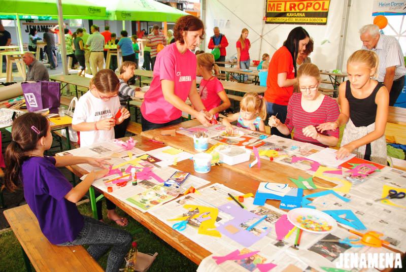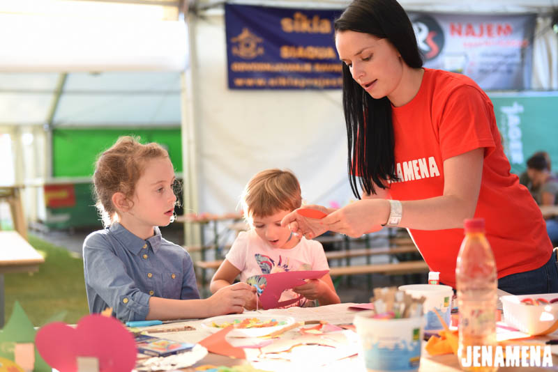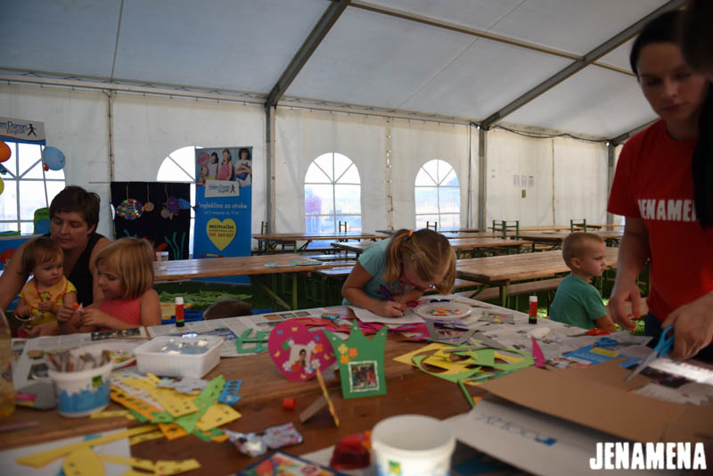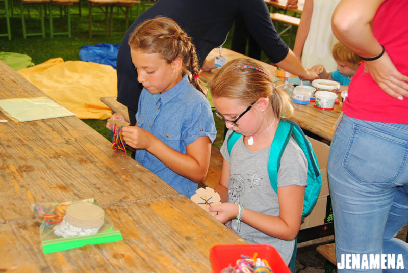 Otroci so lahko ustvarjali v različnih ustvarjalnih delavnicah, med drugim so lahko sodelovali v angleški delavnici, barvali mandale in še kaj. Ogledali so si lahko tudi gledališko predstavo, ki so jo pripravili najmlajši pod vodstvom mentorice Nataše Litrop v sklopu Jenamena počitnic. Otroke smo na koncu pogostili s pomfrijem in domačim sokom.