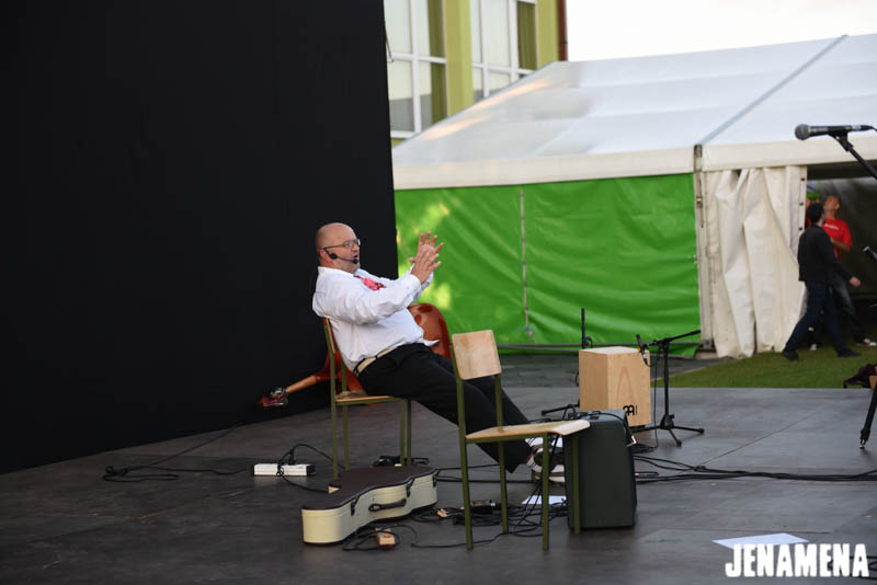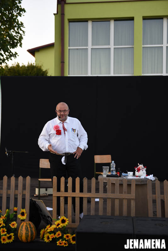 Na odru pod zvezdami je s svojimi izvirnimi in duhovitimi idejami navduševal Saša Županek v gledališki predstavi Problemi z nevolami.