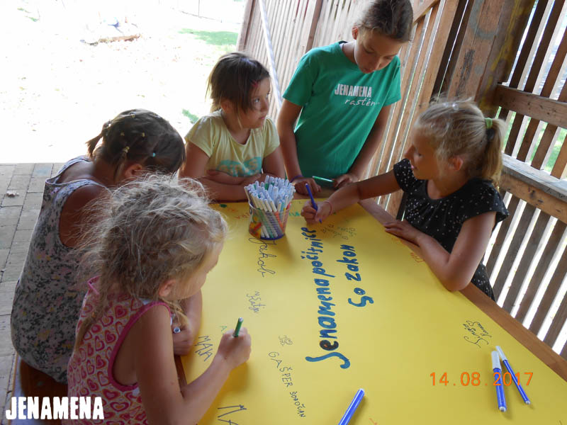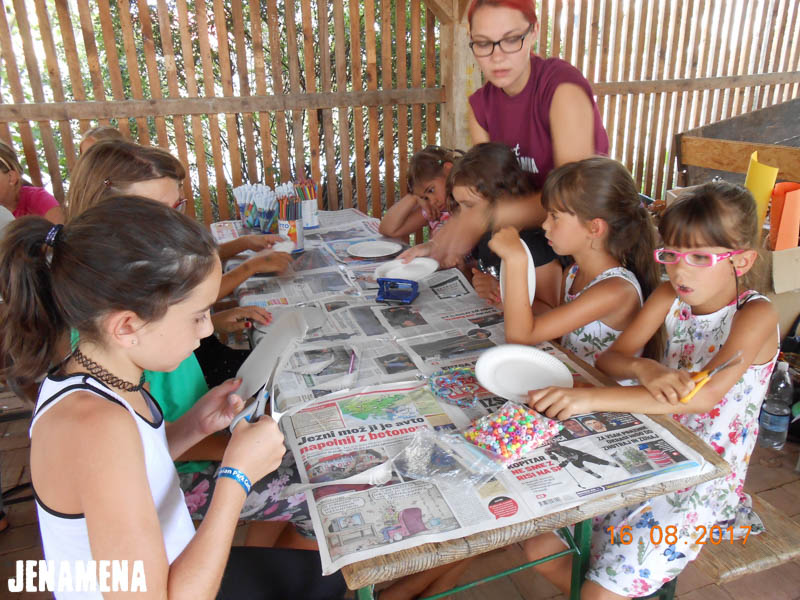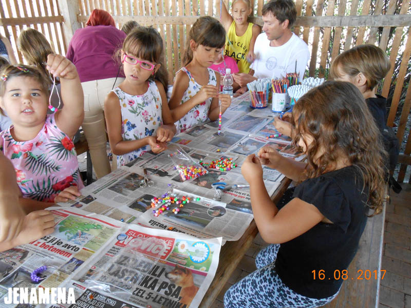 Z Jenamena počitnicami za najmlajše se je že v ponedeljek, 14. avgusta 2017, začel 11. Jenamena fest. Otroci so se prvi dan predvsem spoznavali, v nadaljevanju pa so poustvarjali po pravljici Mavrična ribica. Tako so izdelovali ladjice in ribice, nekaj prostega časa pa so zapolnili z igro na prostem in z družabnimi igrami. V sredo, 16. avgusta, so otroci najprej prisluhnili pravljici Zakaj je bil rožnati slonček žalosten in kako je postal zopet srečen. V nadaljevanju so izdelovali daljnoglede, lovilce sanj in nakit. Druščina otrok je pisana, vesela in jenamena razpoložena, zato se vsi skupaj že veselimo nadaljevanja Jenamena počitnic, saj smo prepričani, da bomo z otroki, ki so polni iskrenega navdušenja in smeha, doživeli še veliko lepega.