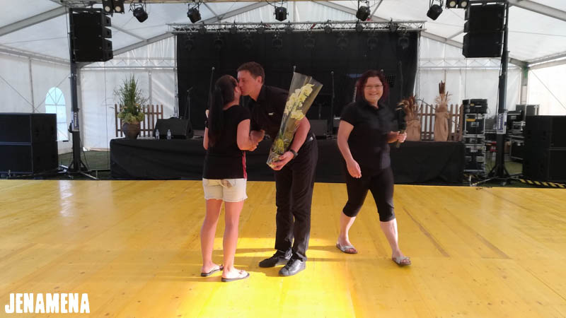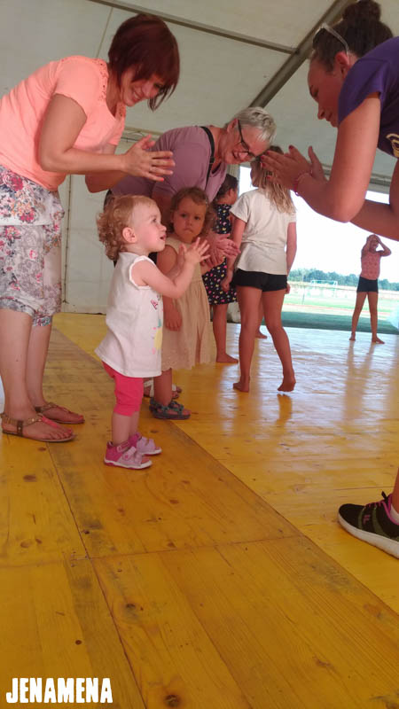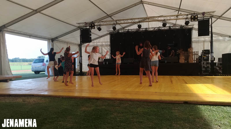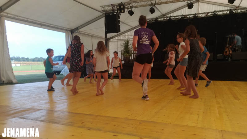 Še pred otvoritvijo Jenamena festa so otroci uživali v plesnih delavnicah pod vodtvom Plesne šole Urška Pomurje, katere člani so zbrane navdušili tudi z atraktivnimi plesnimi točkami. Na otvoritvi festivala je zbrane pozdravil bovjaš Mirko, del otvoritvenega programa so bile tudi Ljudske pevke upokojenke in folklorniki. Nekaj misli je z nami delil župan Občine Črenšovci, festival pa se je uradno pričel z že tradicionalnim dvigom festivalske zastave in spustom golobov miru, ki jih je tudi tokrat velikodušno ponudil gospod Fekonja.