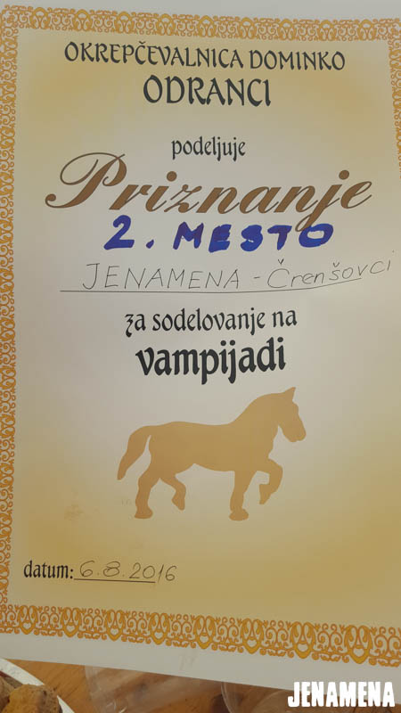 Jenamena kuharska ekipa v zasedbi Marija Kustec, Jožef Kustec in Cilka Zelko se je udeležila vampijade v Odrancih in v tekmovanju med 15 sodelujočimi ekipami osvojila odlično 2. mesto, za kar jim čestitamo. Vampi so bili resnično odlični, kuharji, ki bodo poskrbeli, da na Jenamena fest-u ne bomo lačni, pa so več kot opravičili naše zaupanje.