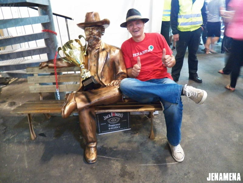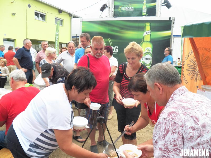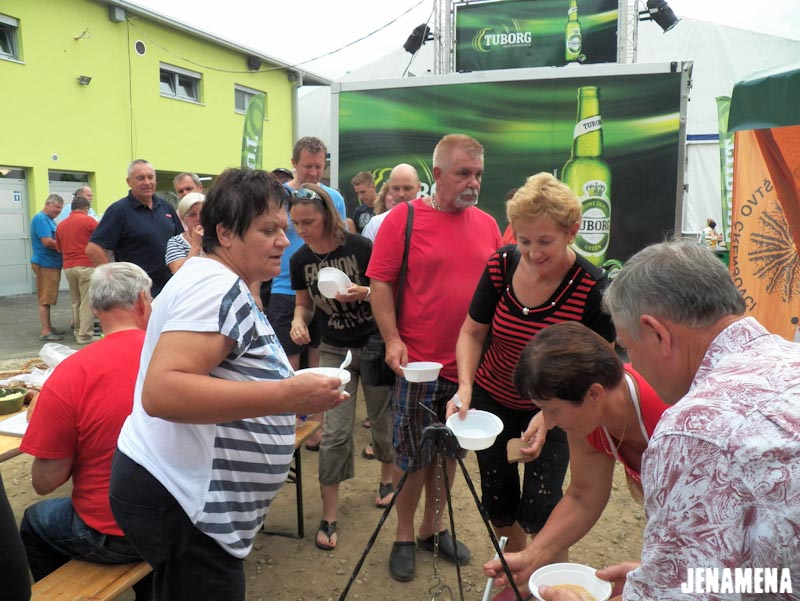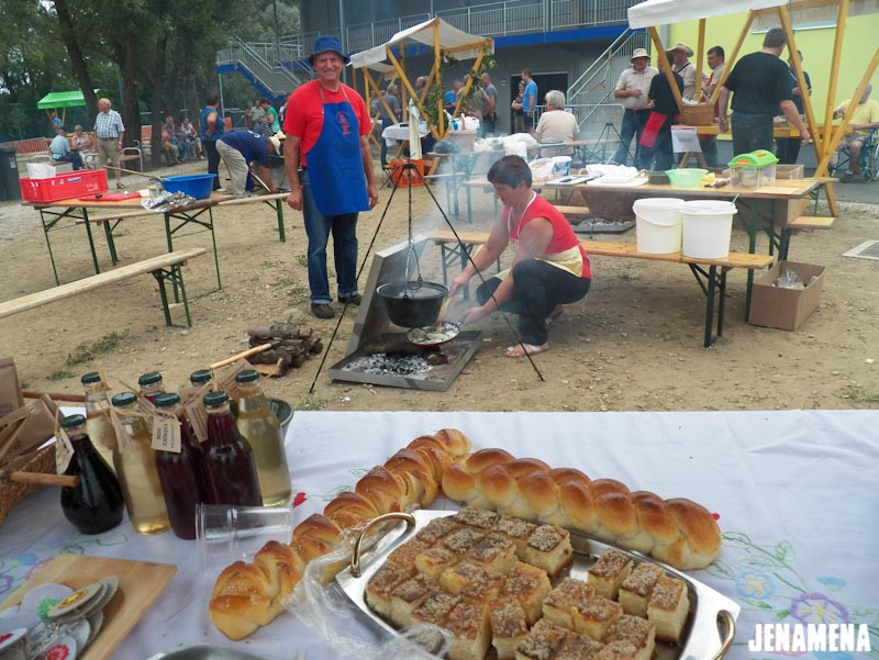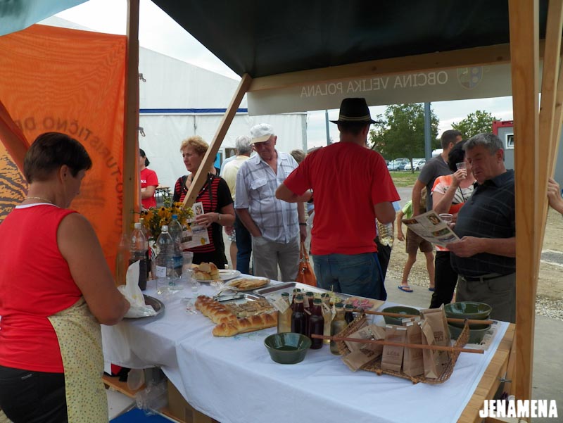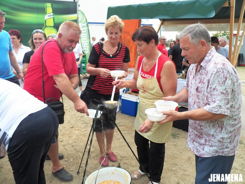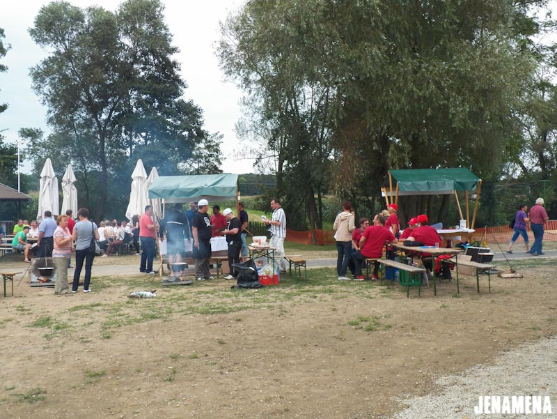 Tudi letos je ekipa JENAMENA sodelovala na tekmovanju v kuhanju bujte repe v okviru Pomurskega poletnega festivala v Veliki Polani. Glavni kuharici Mariji Hanc je pomagal njen mož Martin Hanc, za dobro vzdušje ob stojnici in kotlu je skrbel Damijan Hozjan. Podpret nas je prišlo veliko število ljudi, gneča pred našim kotlom repe je bila izjemno velika, zato je marsikdo, ki bi želel okusiti najboljšo bujto repo, ostal brez nje. Odločili smo se, da bomo mnogim interesentom Maričkine bujte repe ustregli že v okviru letošnjega Jenamena fest-a. Ekipi Jenamena se zahvaljujemo za sodelovanje in promocijo festivala in ISKRENO ČESTITAMO ob izjemnem uspehu – ponovni osvojitvi velikega pokala in razglasitvi najboljše bujte repe v Veliki Polani že drugo leto zapored. Hvala tudi vsem Jenamena navijačem in podpornikom. JENAMENA REPA J