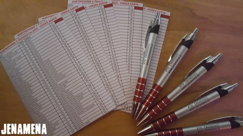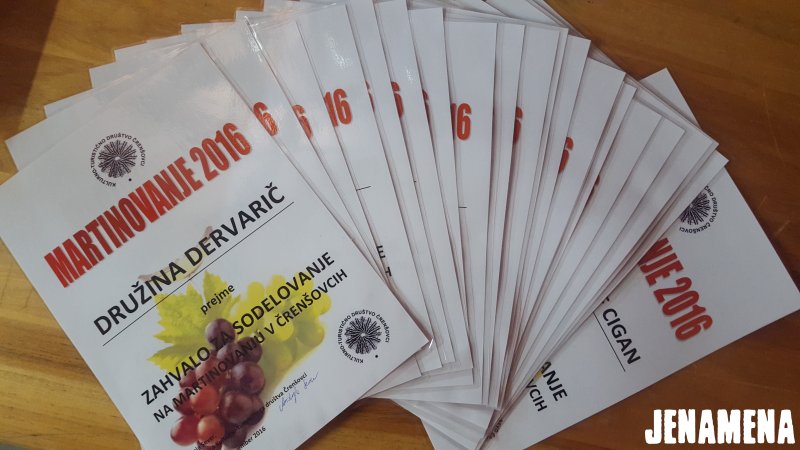 Člani Kulturno-turističnega društva Črenšovci smo v petek, 11. novembra 2016, v okviru prireditev Po večeraj v Čerenšovcaj v športnem parku v Črenšovcih že tradicionalno pripravili kulturni program s krstom moštva, ki so ga izvedli člani skupine Čerensa in ljudski godci. Ob tej priložnosti smo lahko obiskovalcem ob pomoči 22 domačih vinogradnikov ponudili v pokušino 34 vzorcev mladega vina, obiskovalci so se lahko okrepčali tudi s pajanim krüjon in pico, ki jo je pripravila kuharska ekipa Jenamena. Kljub hladnemu vremenu so se obiskovalci ob tej priložnosti srečali, poklepetali in malce drugače preživeli zanimiv večer. Ob tej priložnosti se zahvaljujemo vsem, ki so prispevali vzorce vin, kakor tudi vsem, ki so pomagali pri izvedbi same prireditve.